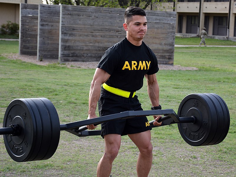 Sgt. Aaron Angulo, Brooke Army Medical Center, Fort Sam Houston, Texas, pulls his energy inward during the deadlift segment during the regional Best Warrior competition for Army Medicine.