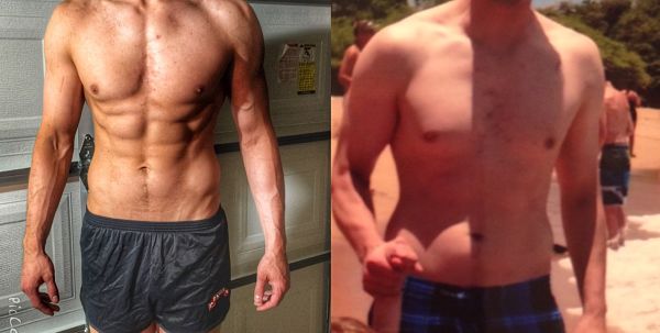 I worked out with the same intensity and frequency in both images. Left: when I started taking nutrition seriously. Images are less than one year apart.