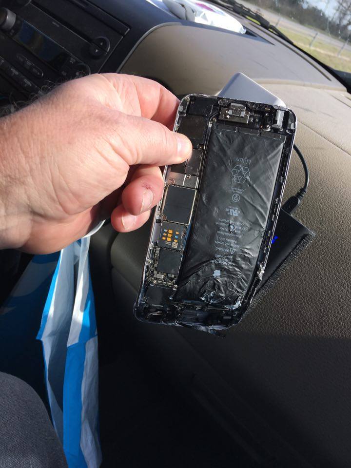 Earlier, the First Daughter had arranged to meet with the arresting officer to recover my iPhone at a nearby Denny’s. When he arrived, he casually handed her my iPhone, which he had freshly run over with his police cruiser: “oops…” he sneered as he handed her my flattened and worthless phone.