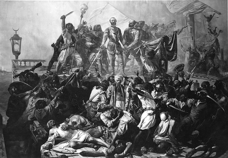 Then the Christians below decks rowing the Muslim ships revolted, breaking their chains and swarming topside, attacking their Muslim masters.