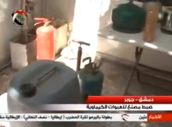 Syrian TV news report of rebel weapons seized in Jobar, Syria