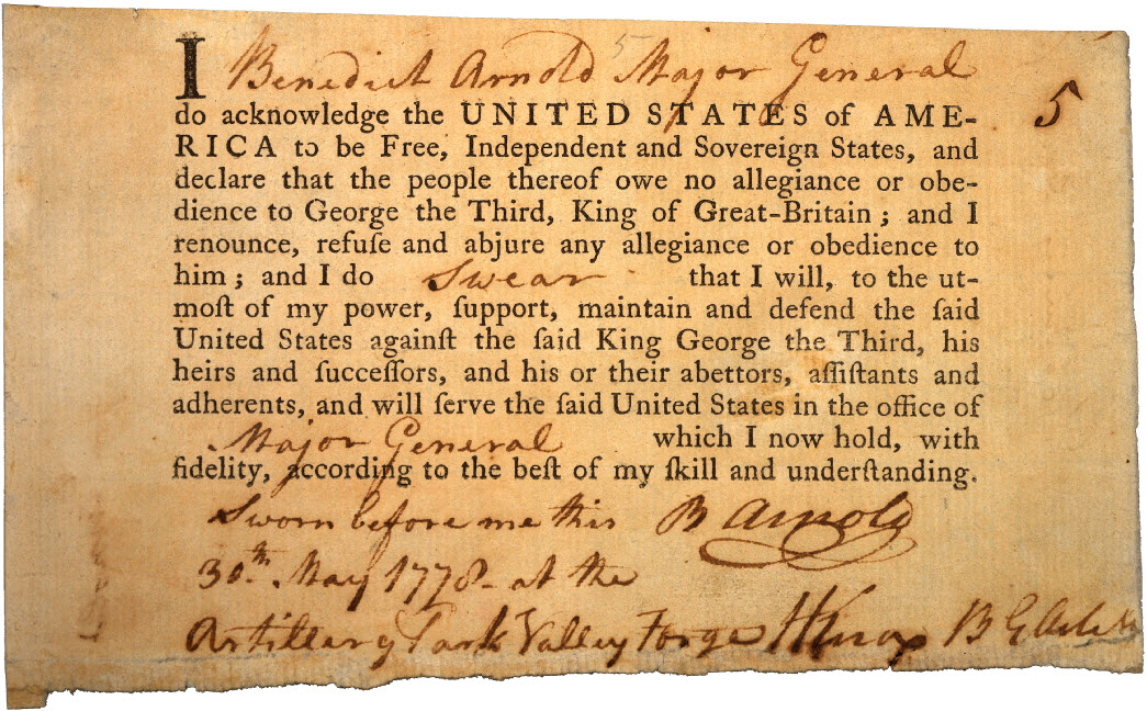 Benedict Arnold’s oath of allegiance (Wikimedia Commons)