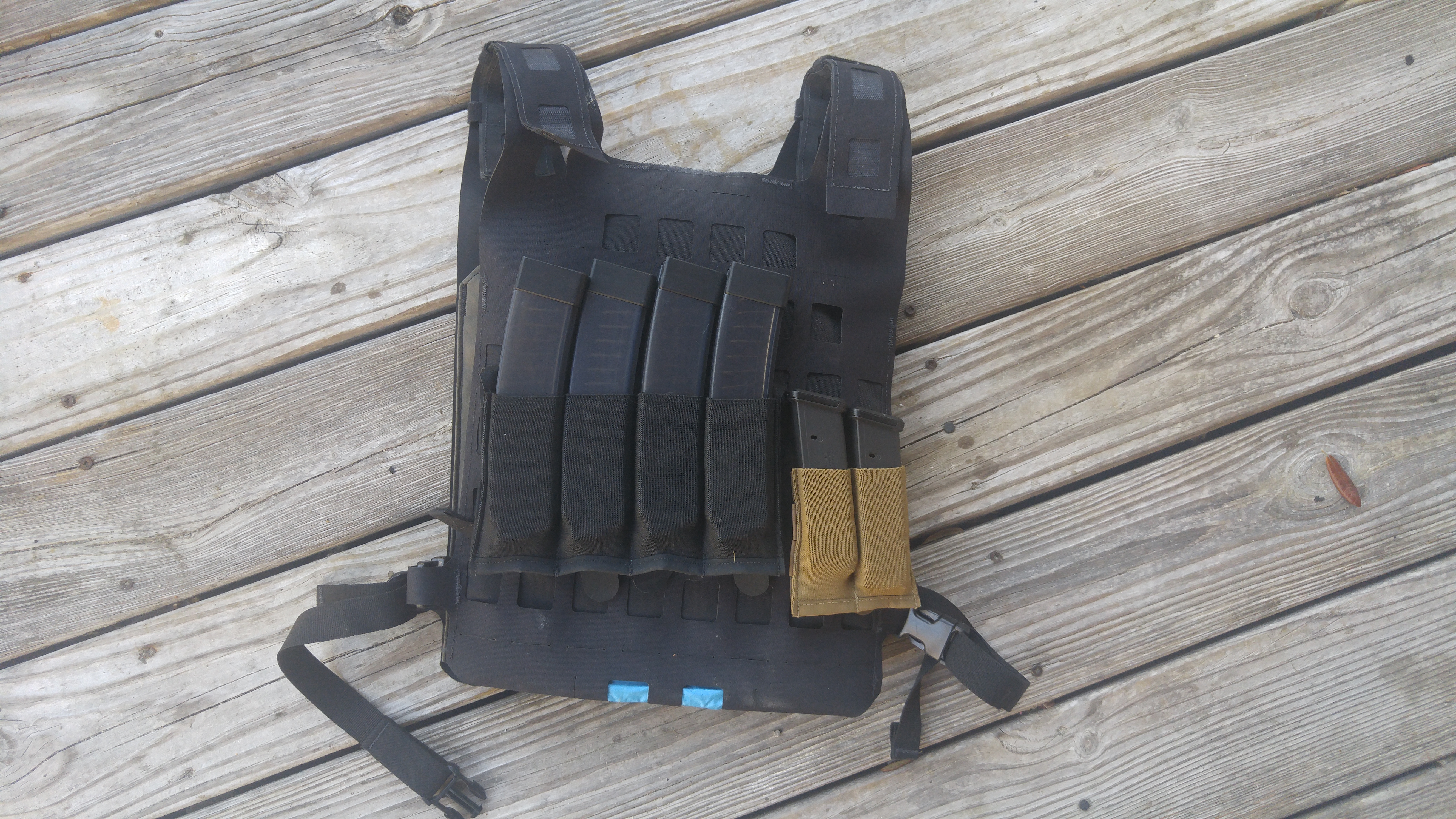 I’ve been running one for about a month now, trying it with various weapons and firearm set ups. It’s been best paired with my Scorpion and Blue Force Gear MP7 magazine pouches. This mags and the mag pouches are thin and light and stay out-of-the-way. I have four magazines mounted and still have room to point a dual pistol magazine pouch. SMG pouches and pistol caliber carbines are perfect for this lightweight, and compact plate carrier. During my Plate Minus review I rocked a Scorpion.
