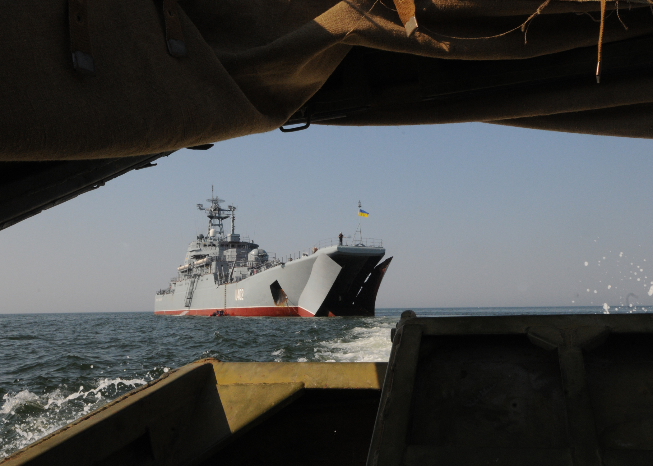 BLACK SEA (June 2, 2015) The guided-missile destroyer USS Ross (DDG 71), front, transits the Black Sea with the Ukranian navy frigate Hetman Sahaydachniy (U 130) during an underway exercise. Ross is conducting naval operations in the U.S. 6th Fleet area of operations in support of U.S. national security interests in Europe. (Source: Official U.S. Navy photo by Mass Communication Specialist 3rd Class Robert S. Price/Released, Public domain, via Wikimedia Commons)