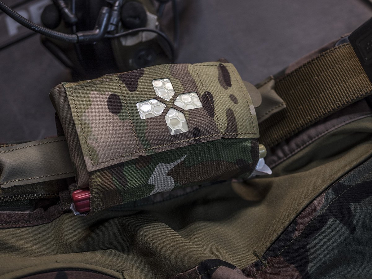 With all of these excellent supplies we need a good pouch. Blue Force Gear doesn’t disappoint. The Micro TKN can be had in Multicam, Black, Coyote Brown, OD Green, and Wold Grey. The Micro TKN features a sleeve that has a medical cross laser cut out with three different backgrounds that can be used (black, red, or a highly reflective glow in the dark background). My particular pouch is beltmounted, however you can get MOLLE mounts as well. The sides of the sleeve stretch to accommodate the medical supplies once packed. The inner pouch and outer are made of a combination of 500D Solution Dyed Cordura, TEX 70 bonded nylon thread, Ten-Speed® Military Grade Elastic, and ULTRAcomp laminate. The combined materials make this pouch very strong, and very abrasion resistant. The inner sleeve features pull tabs on either side, so that the contents can be pulled out in either direction if you have this mounted at the small of your back.