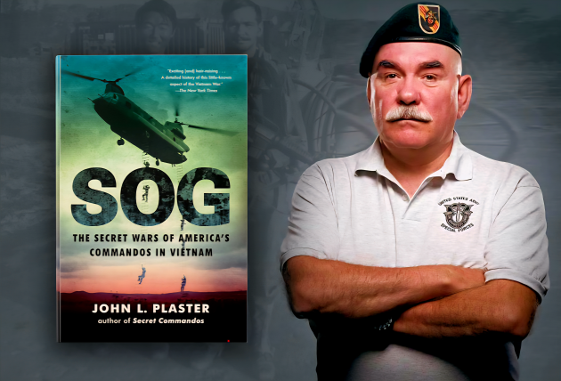 USAR Special Forces Major John L. Plaster and his book SOG. Image Credit: Together We Served