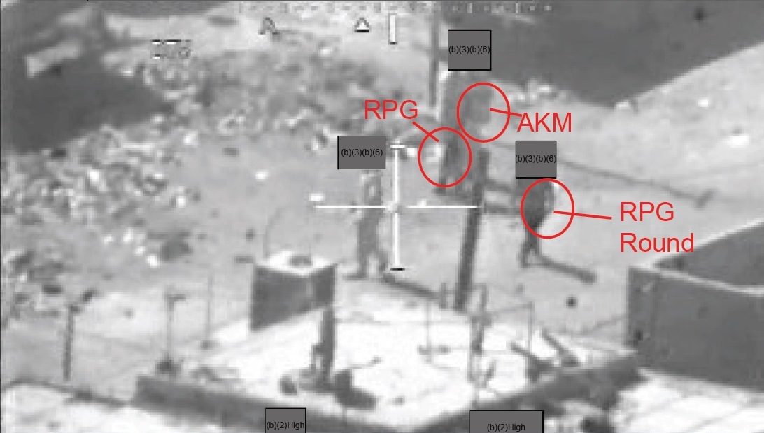 According to the 15-6 sworn statements at least one more weapon is recovered. The gun camera video is graphic but keep in mind the armed insurgents in this group were engaging U.S. troops for HOURS.