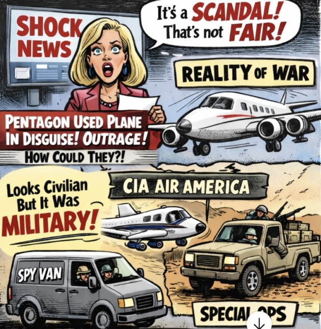 So no, a plane made to look civilian is not a scandal. It is a reminder that war is ugly, complex, and indifferent to headlines. The real scandal is a media ecosystem that keeps pretending otherwise, then acts surprised when reality refuses to behave.
