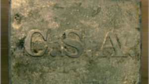 A replica Confederate “CSA” Pewter Rectangle Buckle. (pbs.org)