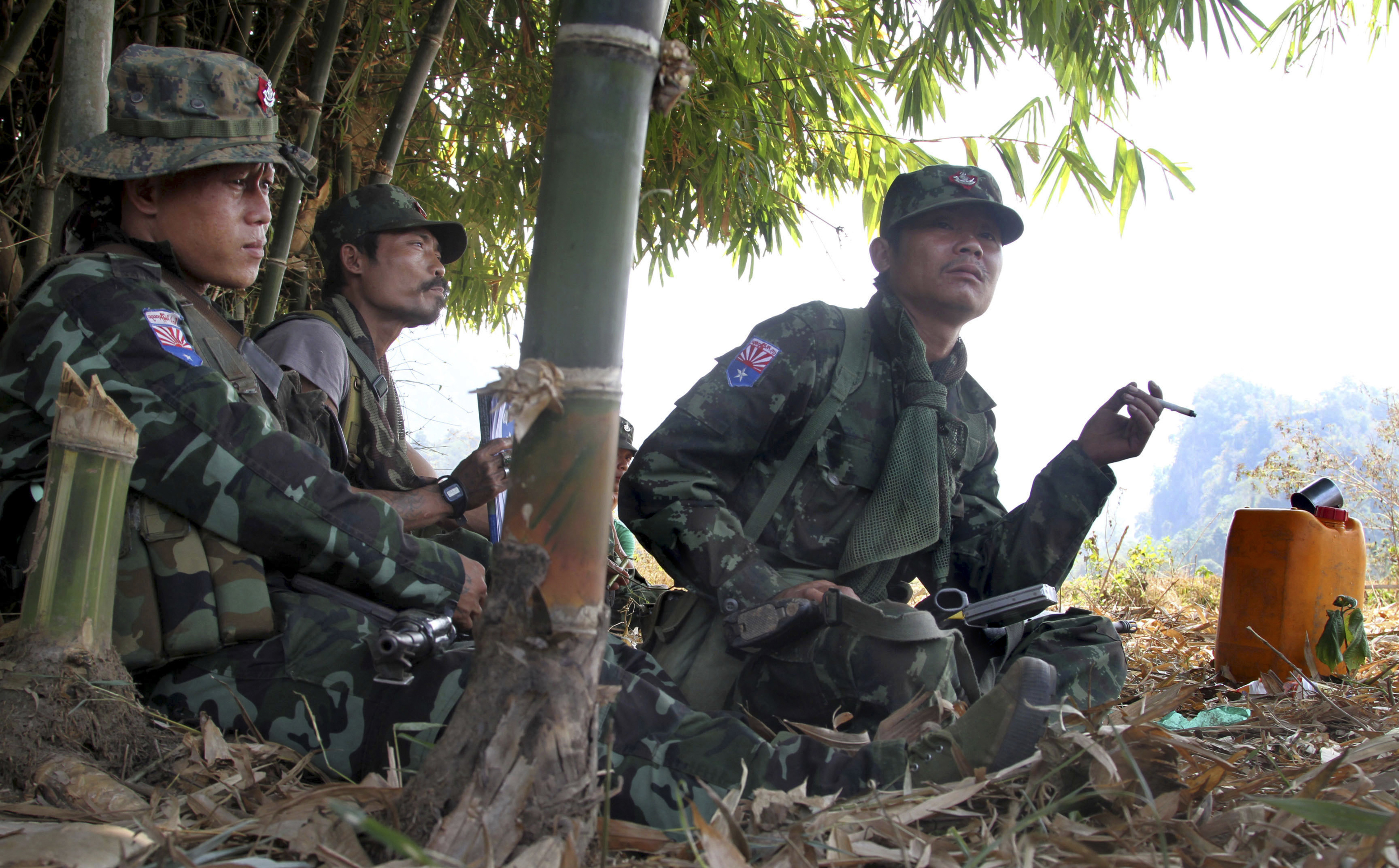 In this Feb. 12, 2013, file photo, soldiers of Karen National Union guard Hpa-an village, Karen State, Myanmar. During nearly seven decades the villages of the Karen have been torched, their men summarily executed and their women raped as the ethnic minority battled Myanmar’s military regime in the world’s longest-running insurgency. In 2013, many of the survivors pinned their hopes on the historic election Nov. 8 pitting the military-backed ruling party against one helmed by pro-democracy icon Aung San Suu Kyi and numerous ethnic parties. (AP Photo/File)