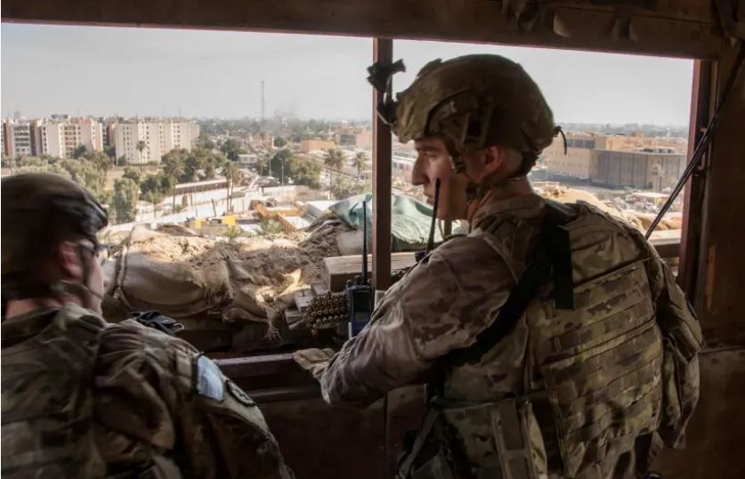 File photo from January 2020, as U.S. troops watch over the U.S. Embassy compound in Baghdad, Iraq. Department of Defense photo