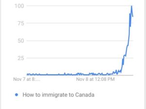 Even before all of the election results were in, there was a spike in Google searches for “immigration to Canada” and the Canadian immigration website crashed. When I first read the headlines about the website crashing, I thought it was a joke or funny coincidence. Before election day, q