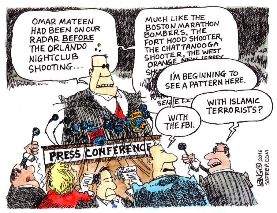 The is no justification or defense for radical religious zealots be they Islamic operatives from the dark ages of Daesh (ISIS,) the bomb and acid throwing Christan agents of the Army of God – or terrorist of any kind. There is also no sense in relieving citizens of their rights in defense of groups who seek to harm those very same citizens. The issue is part of the on-going failures of a flaccid, incompetent, and grossly negligent administration that hinders the investigations of terrorists.