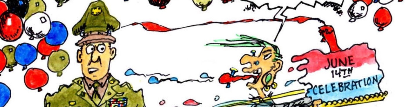 Bob Lang’s cartoon is a bayonet-sharp jab at a culture where shouting over ceremony has become the new form of patriotism.