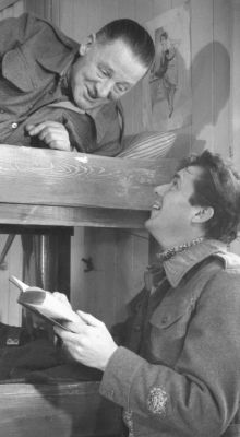 Coward on the set of The Password Is Courage with Dirk Bogarde, who played him in the film. (mqmagazine.co.uk via Wikipedia)