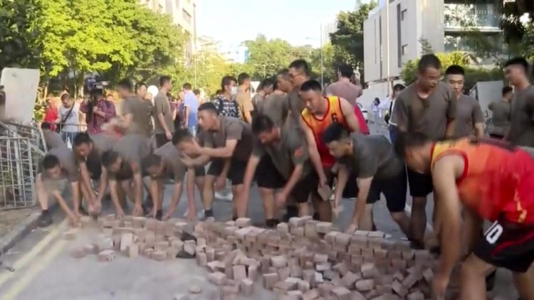 The troops were very visible. They were clearing the former British colony’s streets of debris, bricks, metal bars and paving stones after some of the most violent pro-democracy protests yet in the semi-autonomous territory.