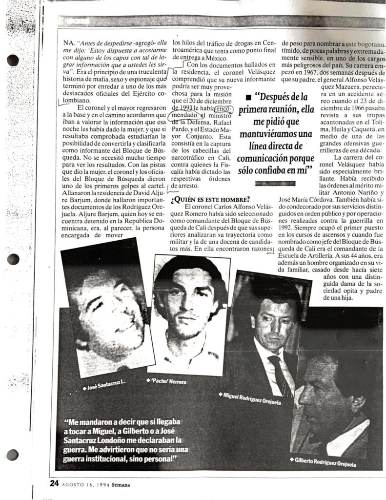 The lead article in the magazine was a nearly ten pages long outlining an in-depth interview with him and how he was set up and blackmailed by the Santiago de Cali Cartel. He was approached and propositioned by a woman, Mery de la Vega, who was, of course, on the cartel payroll. She took him to her place where they had intimate relations in a bed with a hidden camera in the ceiling overhead.