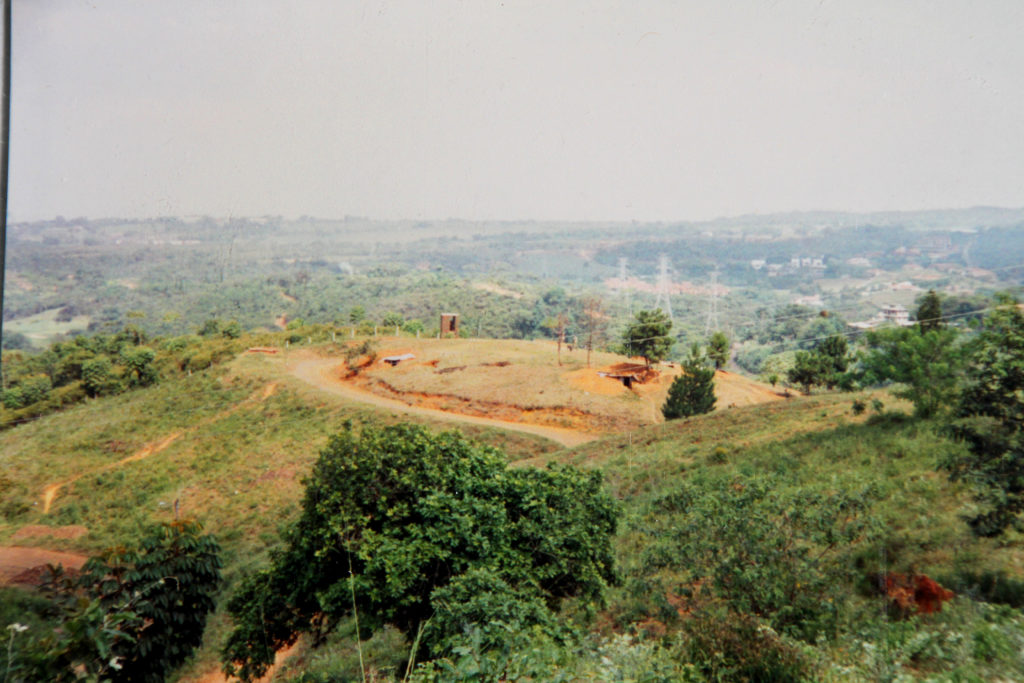 An aspect of the protective perimeter of our polvorina compoundLooking uphill toward our open-air barrack and chow hall