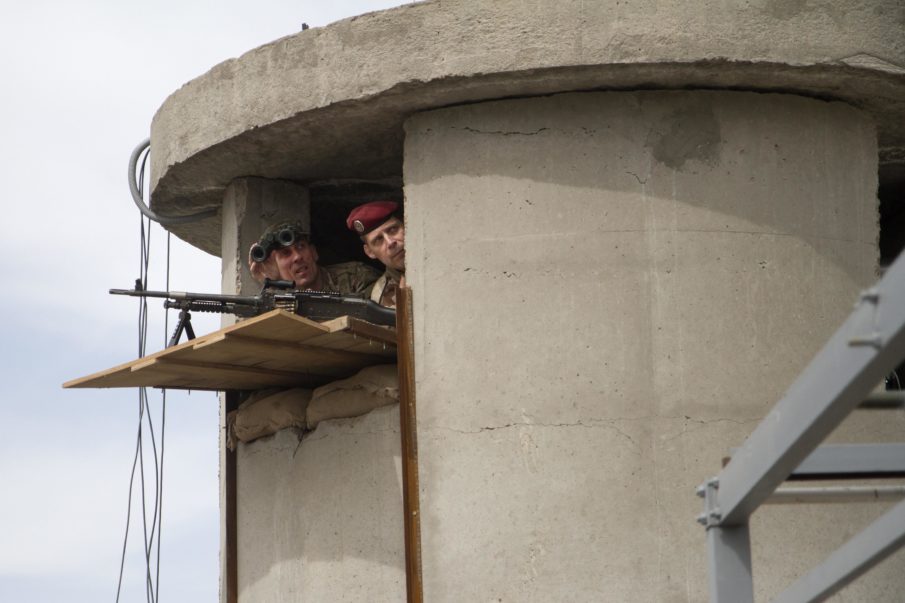 Featured image: U.S. Army Maj. Gen. Gary J. Volesky, left, the commander of Combined Joint Task Force Land Component Command – Operation Inherent Resolve, and a French soldier peer out of a guard tower at Camp Monsabert, Iraq, March 24, 2016. Volesky visited the camp to meet with Task Force Monsabert senior leaders and to receive a briefing on the ongoing training effort there. Army National Guard photo by Sgt. Katie Eggers [Public Domain]