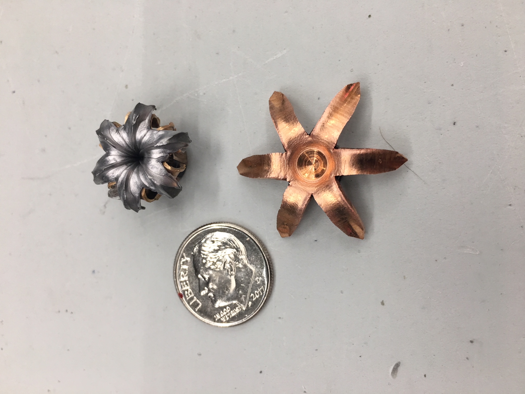 G2 Research is an American company that produces a range of ammunition for handguns, rifles and shotguns. They precision machine each round using copper instead of lead. Copper bullets generally hold their profile better than lead upon impact, have better penetration and don’t have the toxicity of lead. Their R.I.P. and Telos ammunition is designed with “trocars” that fragment upon impact to inflict shallow tissue damage while the solid base of the round penetrates further. Their Civic Duty ammunition is similarly designed, but instead of fragmenting will simply peel back to increase the size of the wound channel.