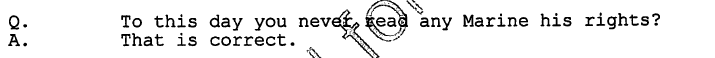 - Questions to Pihana: “To this day, you never read any Marine their rights.” A: “That is correct.” Q: 17 Marines and one interpreter heard small arms fire. A: “No dispute.” Q: 10 Marines “saw small arms fire.” A: No dispute. Q: Eight Marines saw enemy shooters. A: No dispute. Q: How many Afghan witnesses did you talk to? A: There were probably 8-10.