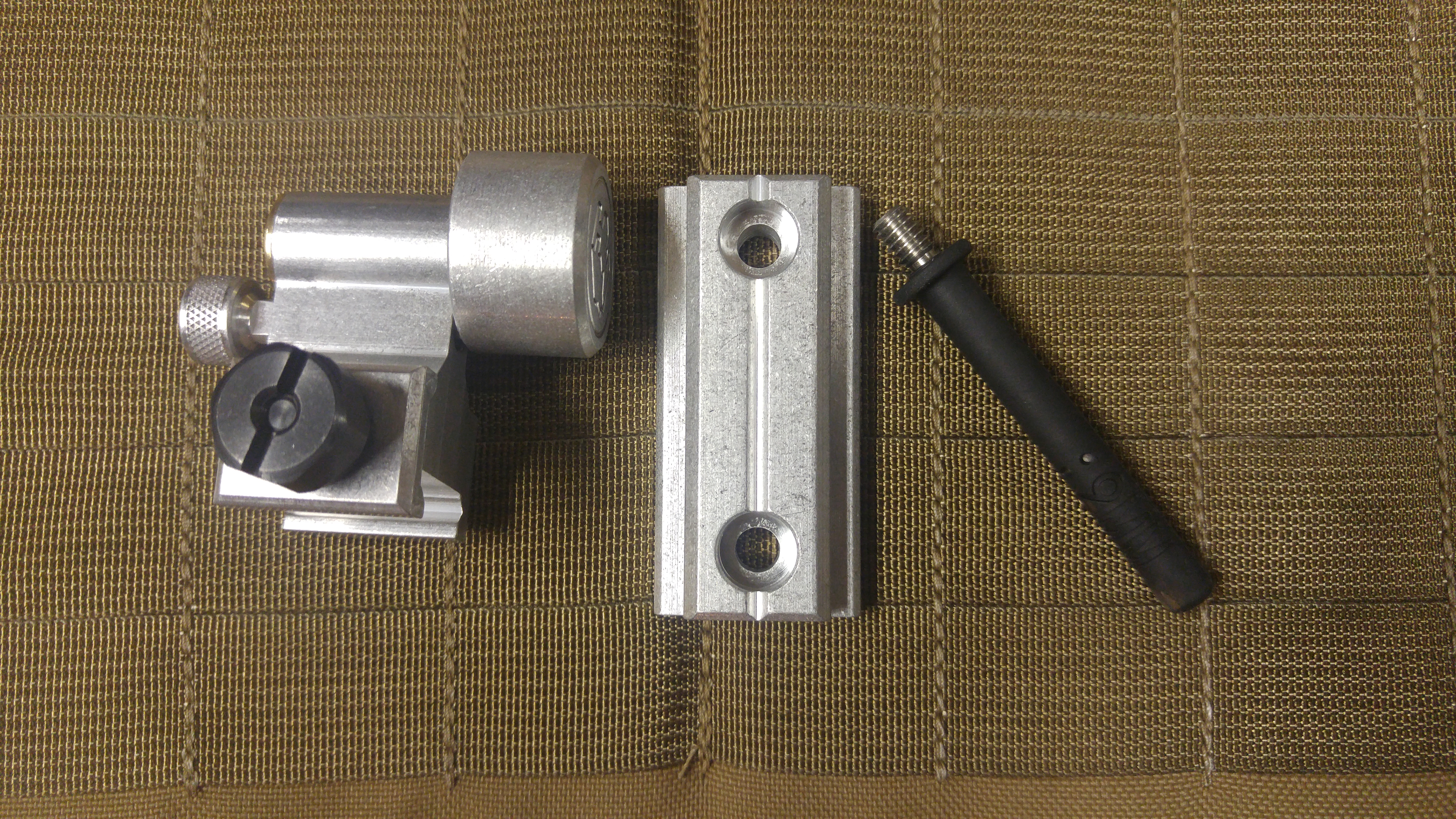 The Madhouse Design base mounting rail resembles a picatinny rail and has two holes designed to screw the system into a base. This allows you to mount the system nearly anywhere. The pin that goes down the barrel is rubberized and won’t scrape or damage your bore. I’m planning to mount mine under my desk for a much-needed desk gun.