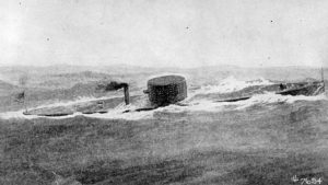 The next morning, on March 9, 1862, the Virginia came head to head with the Union’s new ironclad, the U.S.S. Monitor. It was a steamship with an extremely low profile, only 18 inches above water. This would mark the first battle between ironclad ships, and would usher in a new era of naval warfare.