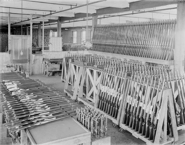 Inside the Ross Rifle Factory, Quebec City, ca. 1904-1905 (Unknown author, Public domain, via Wikimedia Commons)