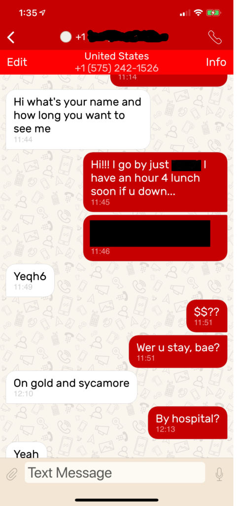 As predicted, there was no real vigil on the other end of my email. I then texted a message to find out where the victim was staying. I used a burner phone number application to avoid compromising my personal number.