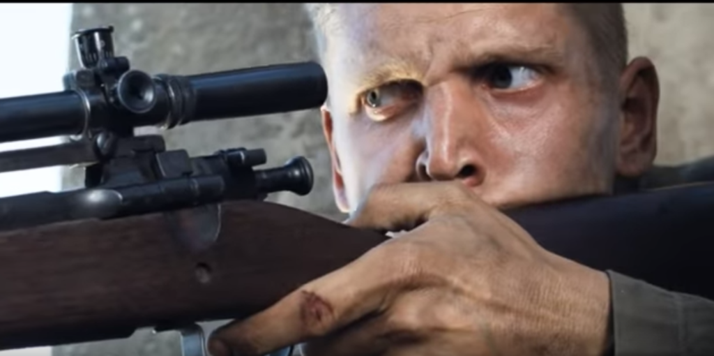 Aside from any concern I had about getting aloft in the steeple, I was jazzed about the whole idea of going full Kelly’s Heroes climbing up in a church steeple — a sniper’s paradise — and reporting on Tiger Tank activity… er, watching an old guy jog by. Images of the Gospel-quoting steeple-perched sniper in Saving Private Ryan also made their debut in my mind; how could they not?