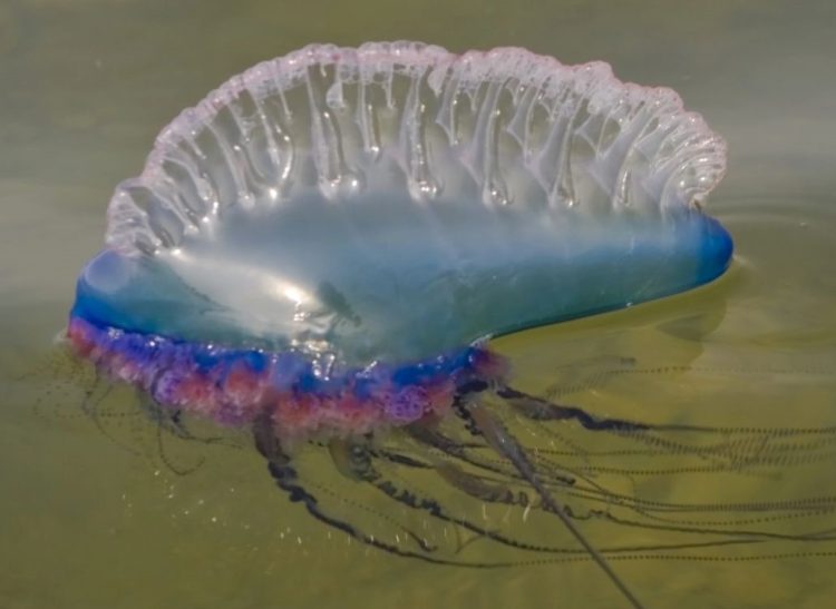 Portuguese Man O’ Wars were all over the surface of the angry sea. The Winter winds had blown them inland from out over the deep Pacific. There were more than is fair to count, with their purple-pink and bluish sails grabbing wind and traversing the sea with the waves. Their tentacles typically extend far below the waterline and contain stinging nematocysts that produce a venom that can cause great stress to a human, even death in severe cases.
