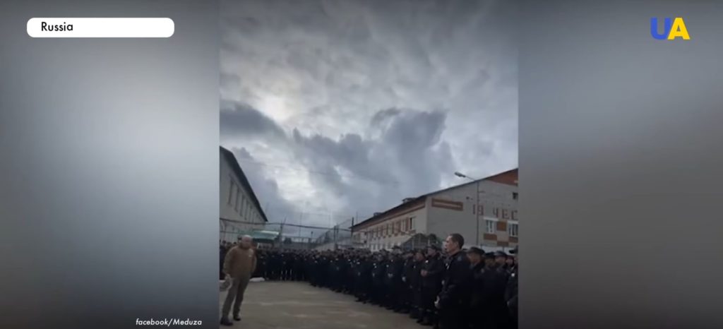 Russian billionaire Yevgeniy Prigozhin appears in this screenshot, supposedly trying to get Russian convicts to fight with the Wagner group. Screenshot from YouTube and UATV English.