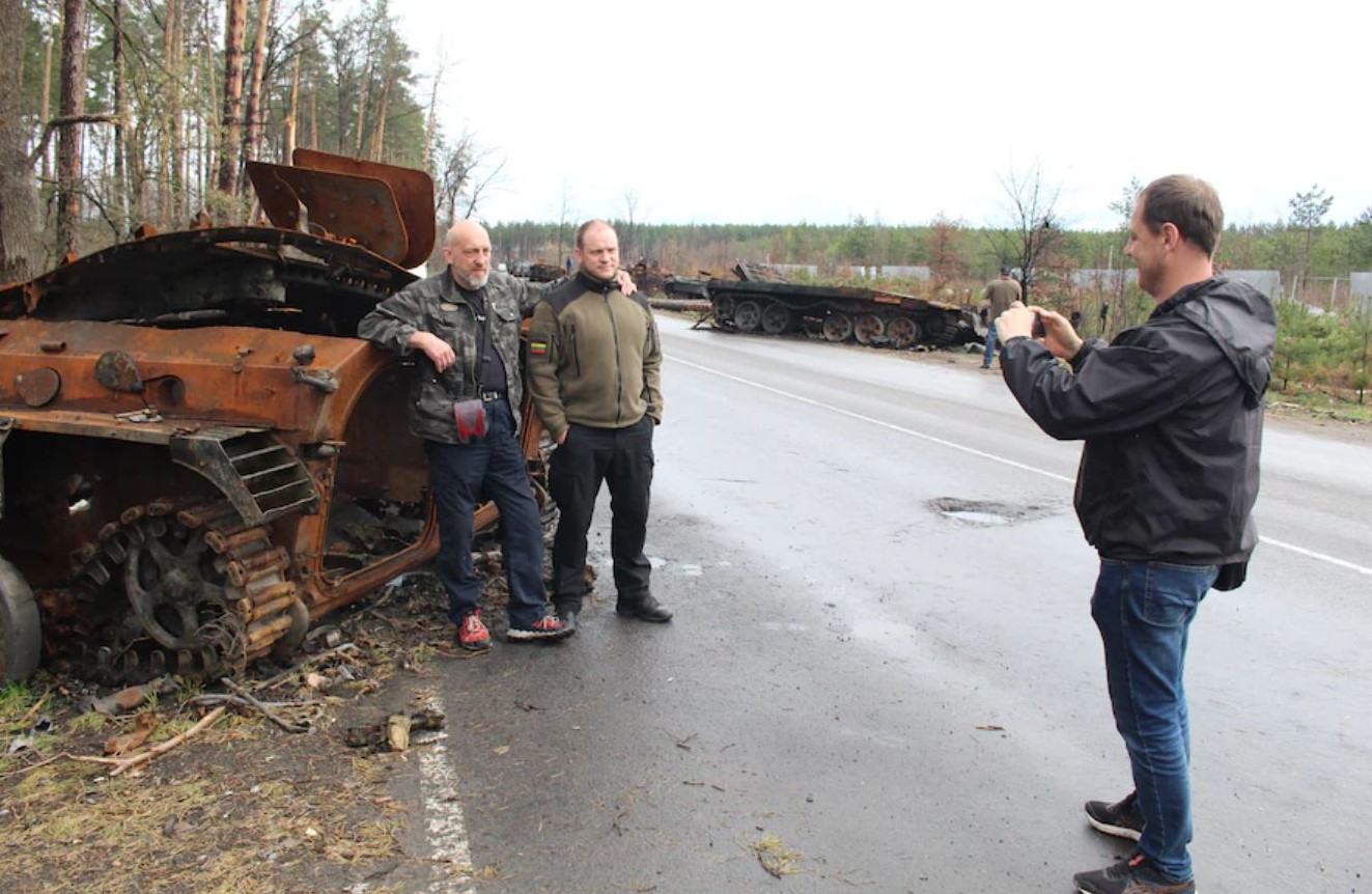 And it’s that reality that many are trying to capture as they explore the long-abandoned charred vehicles stuck in the mud of the side of the road. Karolis Kairys is a good friend of Mr. Grishin. He was in Ukraine to oversee the delivery of a vehicle that he helped organize through his car enthusiast club for the Ukrainian military.
