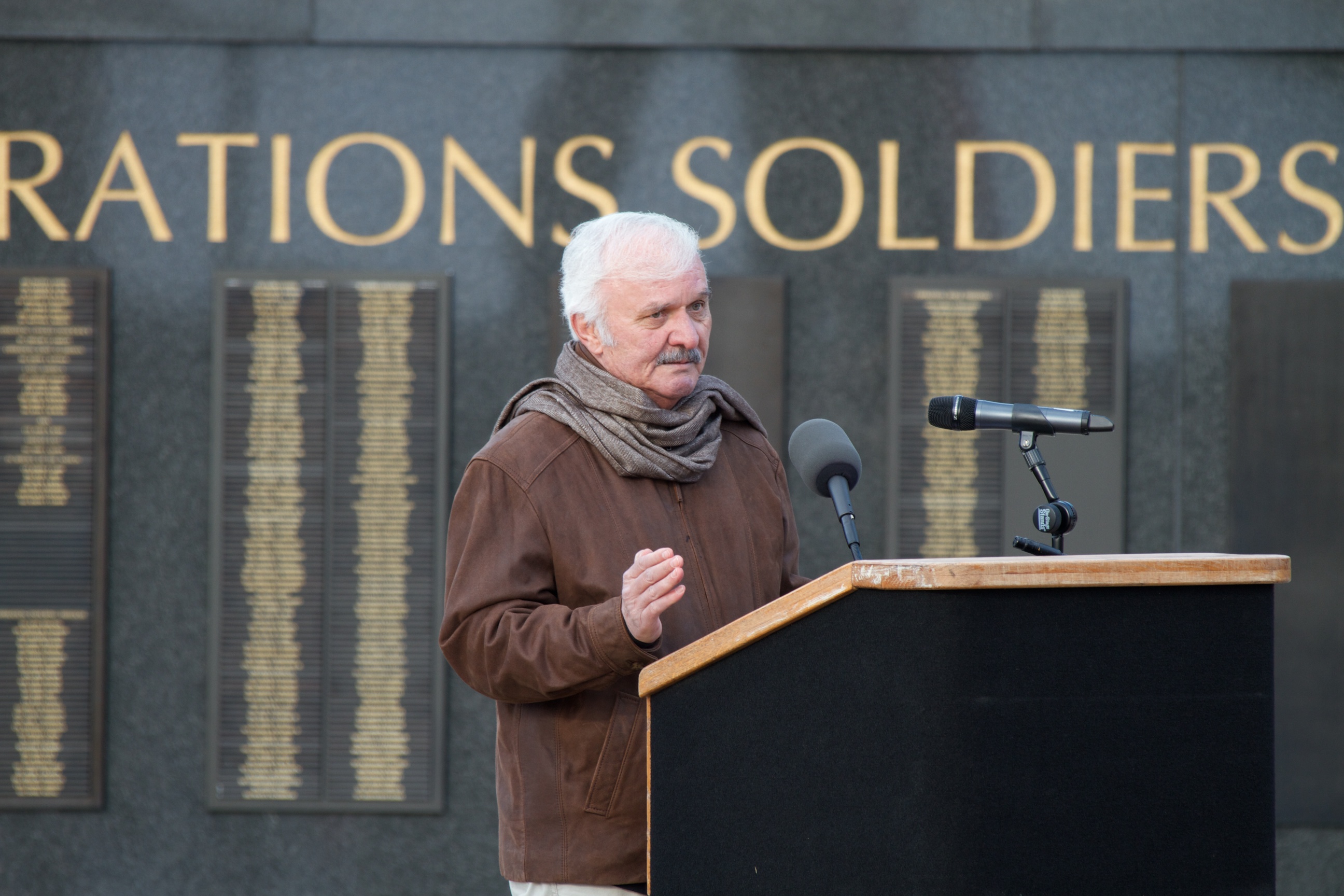 Bob Charest speaking at the stone laying ceremony for Det A at Fort Bragg