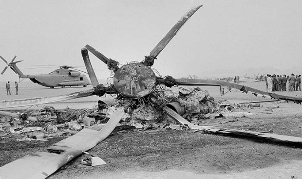The helicopters were delayed several hours because of a sandstorm and a few of them were seriously damaged during the flight. Due to time delays and mechanical malfunctions, Colonel Beckwith made the difficult decision to scrub the mission. Around 2:40AM the men were preparing to abort and pull out of desert one when Major Schaefer’s helicopter crashed into one of the EC-130 airplanes. “A blue fireball ballooned into the night,” the ground force commander wrote (Beckwith, 279).