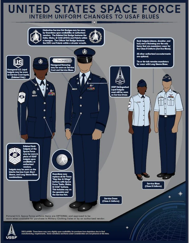 Just recently, USSF released updates on their uniform and grooming policy, including the interim uniform changes that included the enlisted rank insignia, hexagonal nametag, hexagonal US lapel insignia for enlisted Guardians, distinctive service hat badges for officers and enlisted, and Space Force “Delta, Globe and Orbit” buttons. Chief Master Sgt. of the Space Force Roger A. Towberman said,