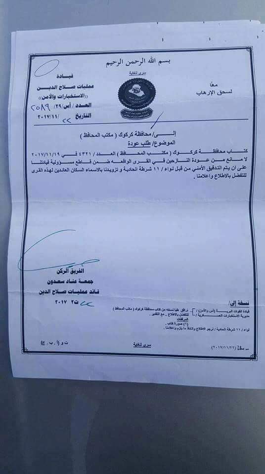 Forged Letter from the Governor of Kirkuk by https://iraq.liveuamap.com/