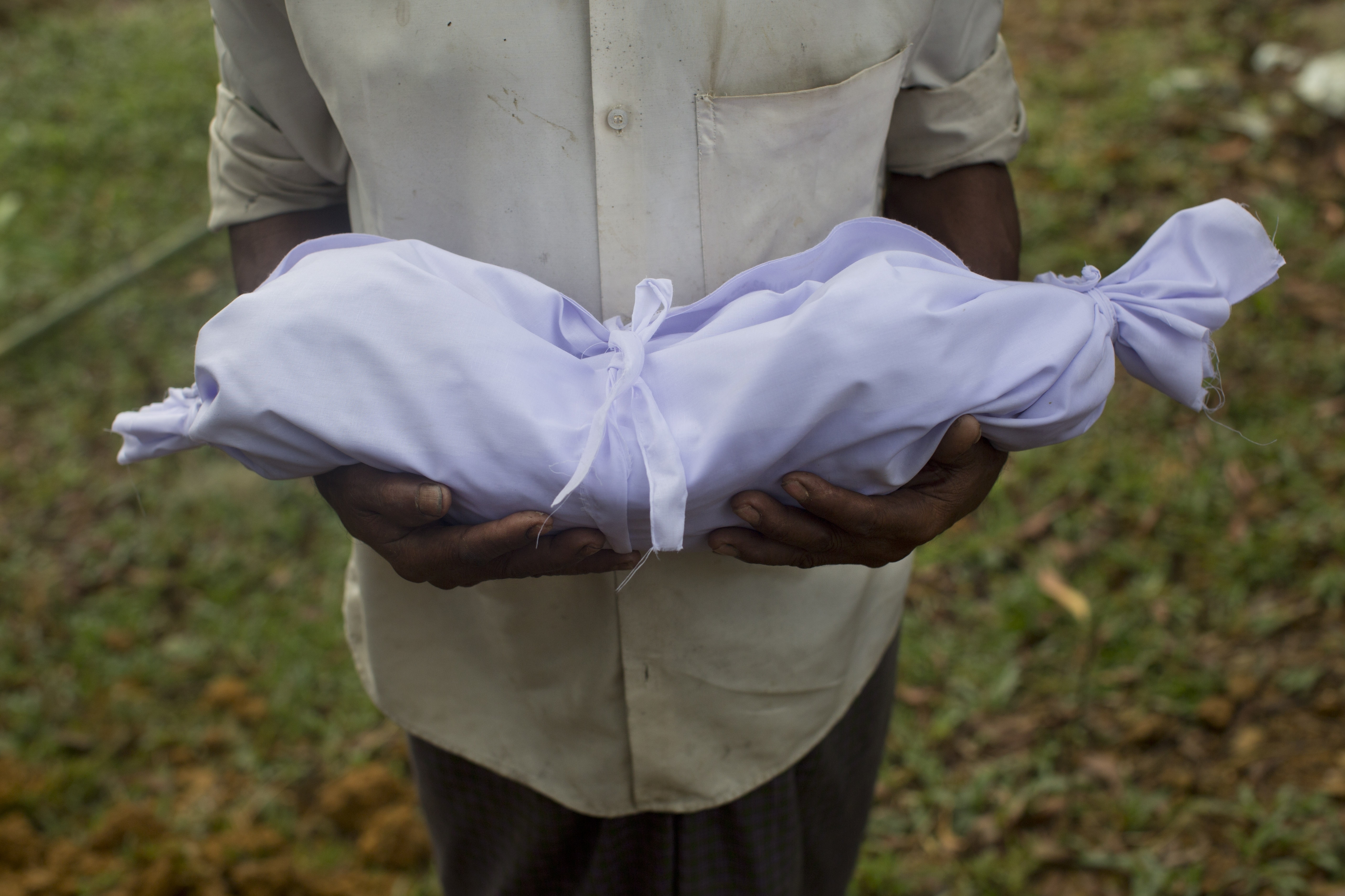 A Rohingya man holds the body of a two-day-old baby before his burial in the cemetery of Kutupalong refugee camp, Bangladesh. For generations, Rohingya Muslims have called Myanmar home. Now, in what appears to be a systematic purge, they are, quite literally, being wiped off the map. (AP Photo/Bernat Armangue, File)