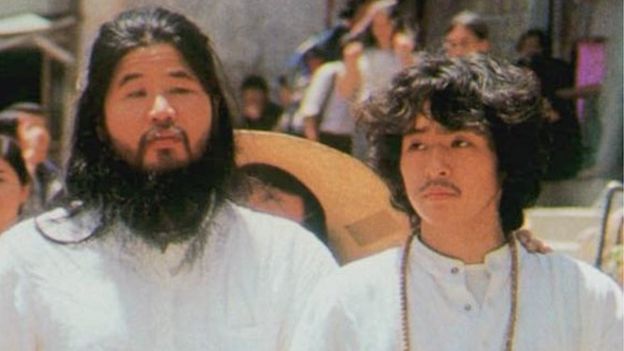 Aum Shinrikyo founder, Shoko Asahara (left) with his top disciple, Yoshihiro Inoue. Both are currently incarcerated.