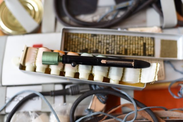 The medical kit could be considered lacking by Western standards. It includes only a very minimal amount of wound care supply with no tape at all. Paracord would be expected to be used for a tourniquet and parachute material for outer wound dressing and slings. Pills include Caffeine, Sulfide, water purification and Aspirin. Two Morphine syrettes and Mosquito repellent complete the kit.