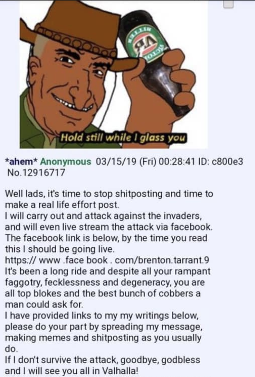 The gunman livestreamed himself driving towards the mosque. The camera pans to his collection of firearms laying on the passenger seat.  They are covered in writing.  Upon closer inspection they have the names of people like Bajo Pivljanin, a Serb who fought against the Ottoman empire in 1600’s, and Sebastiano Vernier appears written on his […]