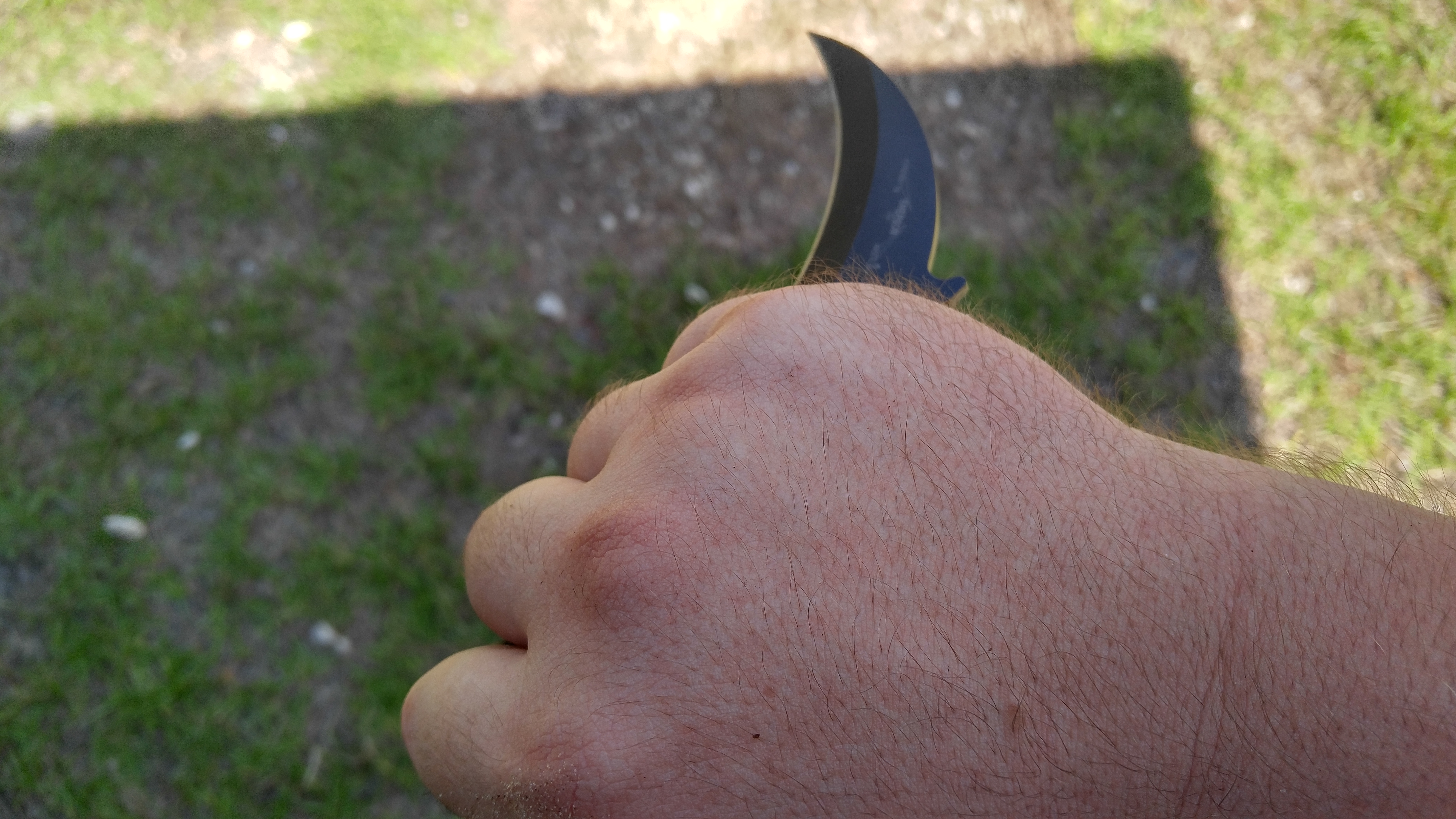 If cardboard was an Axis country in World War 2 it’d be Italy, because it didn’t stand a chance. The curvature of the blade encourages you to apply that little extra force by bending your wrist in the direction of your target. The grip aids in this and allows you to do it with a traditional straight grip, or an ice pick grip. This little extra movement really bites into the board.