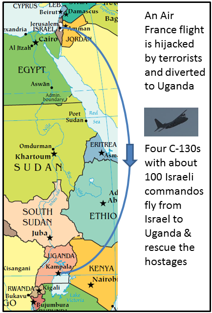 The raid was difficult to conduct – approximately 200 commandos from Israel flew on four C-130 cargo aircraft over 2,000 miles to Uganda. The operation was planned and executed in a short-time frame. There were lots of things that could have gone wrong – an aircraft could be shot down, the element of surprise could be lost, or the hostages could be moved.
