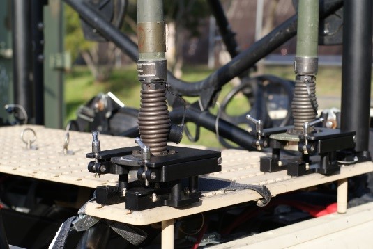 We (4K Solutions, LLC), had an existing contract for tactical communications power solutions already in-place that was to be placed in the LT-ATV. As the LT-ATV morphed in scope and capabilities, we met with the customer and Ferno Military Systems, located in Alpharetta, GA. Ferno Military Systems has had a long relationship with USSOCOM forces, DOD, and other US government agencies requiring rapid transitions from “concept” to “reality,” involving, design, prototyping, testing, and production. Ferno Military Systems was contracted to design the mounting solution using components from their Standard Series (IMS) Integrated Mounting System. The key to the design solution is that it allows the Rangers to rapidly install and deploy, or remove and relocate the antenna systems and other communications equipment on the vehicle platform. Ferno Military Systems designed and manufactured the front bumper mounting tray for the Very Small Aperture Terminal (VSAT), removable telescoping poles for X-wing antennas, removable LOS antenna mounts, monitor mounts, and a custom mounting plate located on the roof of the LT-ATV.