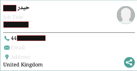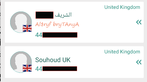We have confirmed that two of the publicly derived numbers (redacted), both from the U.K., likely belong to Mr. Haydar. They are also associated with two possibly personal Twitter accounts of his that we have yet to locate but believe exist.
