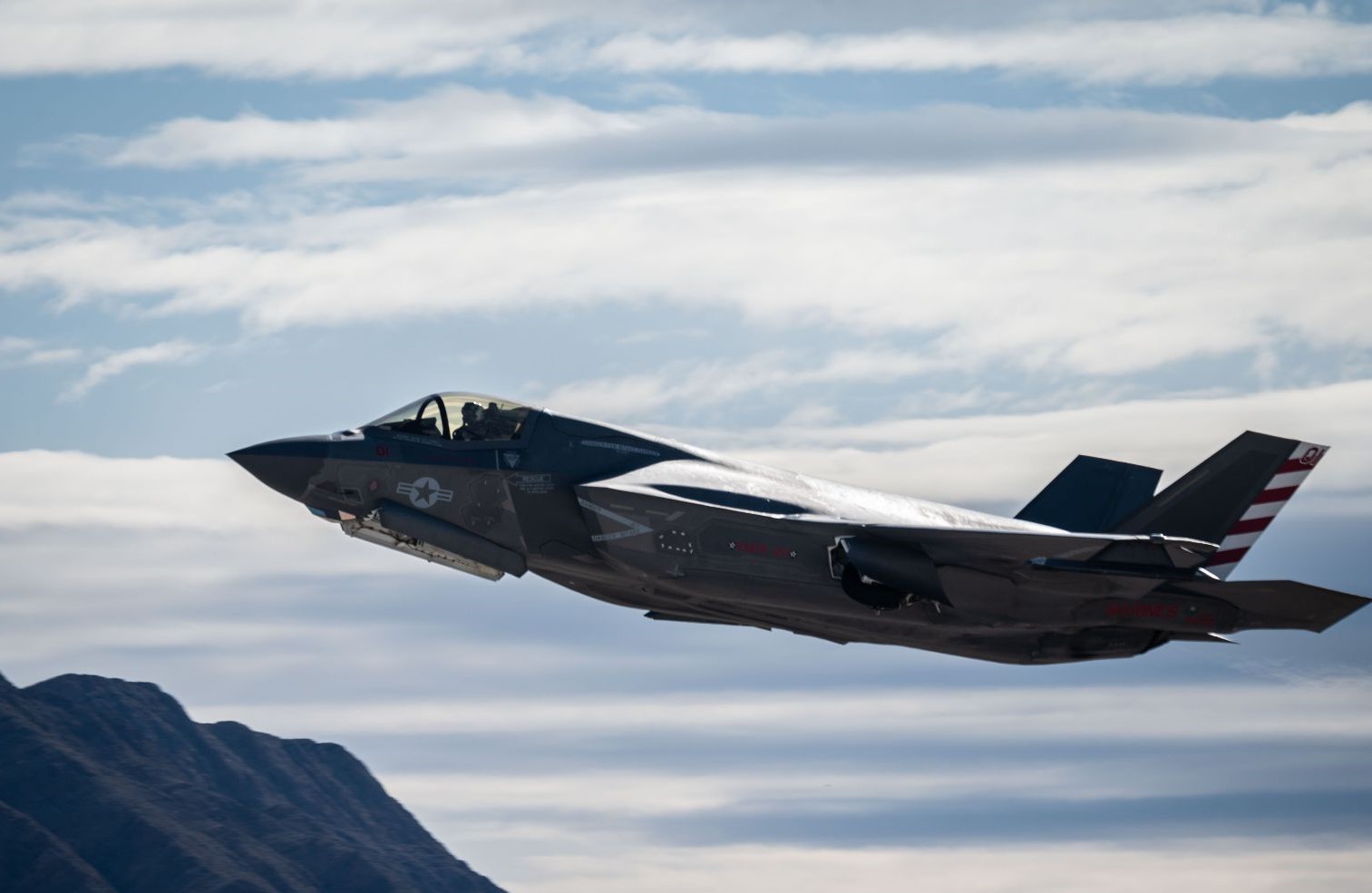 A US Marine Corps F-35B from Marine Fighter Attack Squadron-221 takes flight. Photo by US Air Force Senior Airman Megan Estrada.