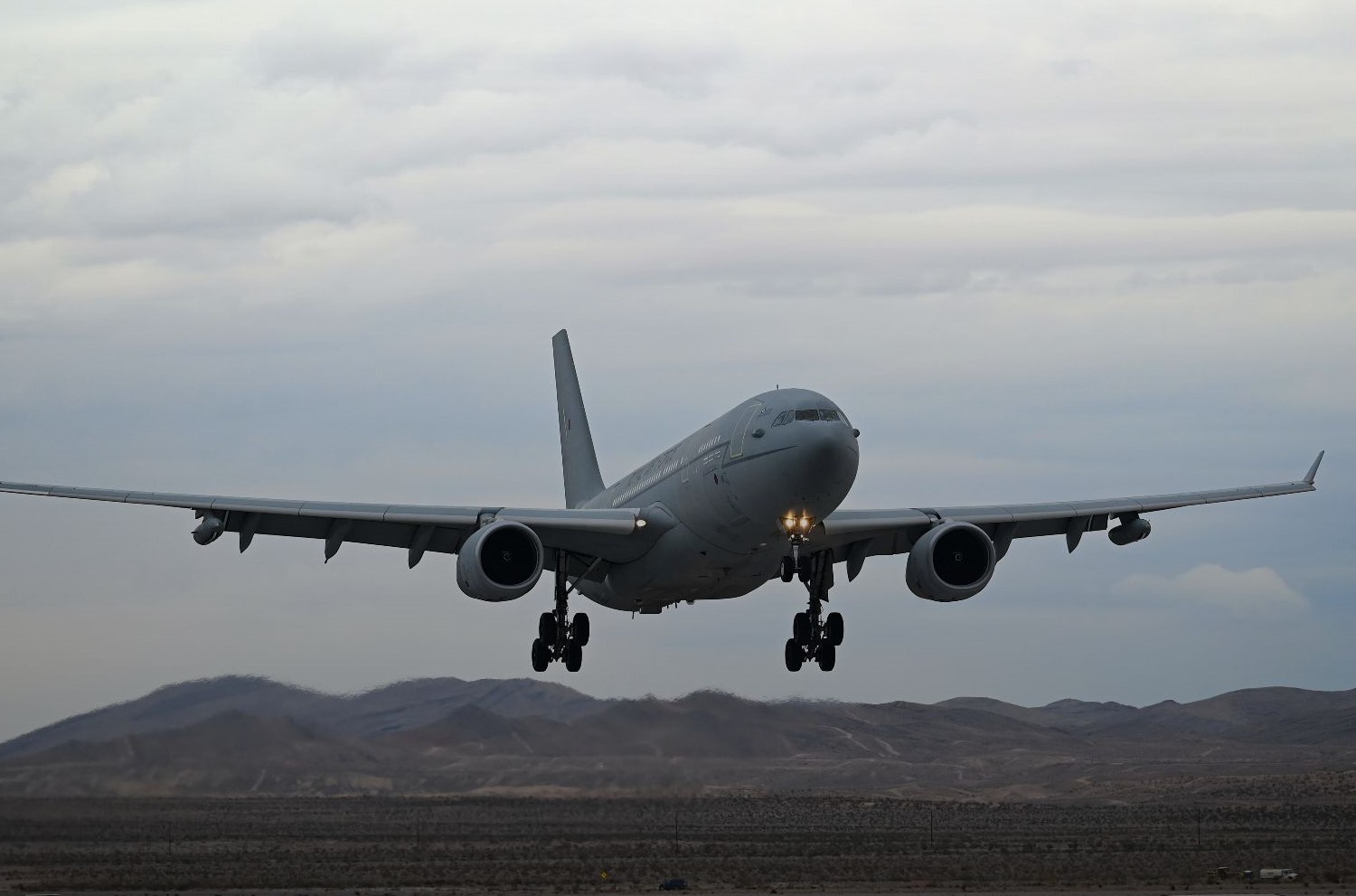 January 19, 2023. A Royal Air Force Voyager KC assigned to the 10 and 101 Squadrons of the RAF and based in Brize Norton, England, gets airborne prior to the start of Red Flag 23-1. Photo by US Air Force Senior Airman Megan Estrada.