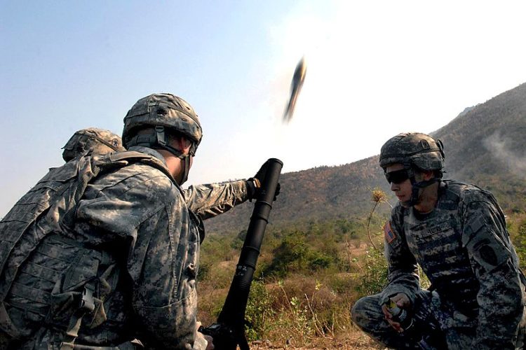 U.S. Army soldiers fire a 60 mm mortar round during Cobra Gold on Pulon Range, Thailand, on Feb. 11, 2011. (Staff Sgt. Matthew E. Winstead, U.S. Army, Public domain, via Wikimedia Commons)