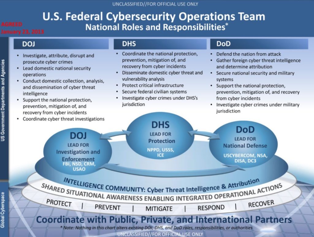 A PowerPoint slide circulated at the hearing, made in 2013, is probably the closest thing the entire federal government has to a single, unified, coherent cyber-security policy. The reality of which was not lost on members of the committee.