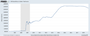Despite the President’s criticisms, the Fed’s policy of tightening is about more than the abstracts of balancing inflation and a booming job market. Throughout the 2008 financial crisis, and for several years thereafter, the central bank departed from its traditional open market operations and embarked on the unprecedented policy of accumulating trillions in securities through open market operations — and not just treasuries, but also defunct paper, such as overvalued agency mortgage-backed securities (held by Fannie Mae and Freddie Mac). The Fed’s open market operations during this time had the dual effect of increasing the “base money” in the US banking system and purging both credit markets and the federal government’s balance sheet of the overvalued mortgage backed securities that had crashed in the run up to the crisis. In all, from December 2007 to September 2015 the Fed increased its balance sheet holdings from $879.4 billion to $4.5 trillion — it did so by purchasing $2.4 trillion in treasury debt and $1.7 trillion in defunct agency mortgage backed securities, the latter, again, having already been purged from the credit markets by government sponsored enterprises (GSEs) Fannie Mae and Freddie Mac.